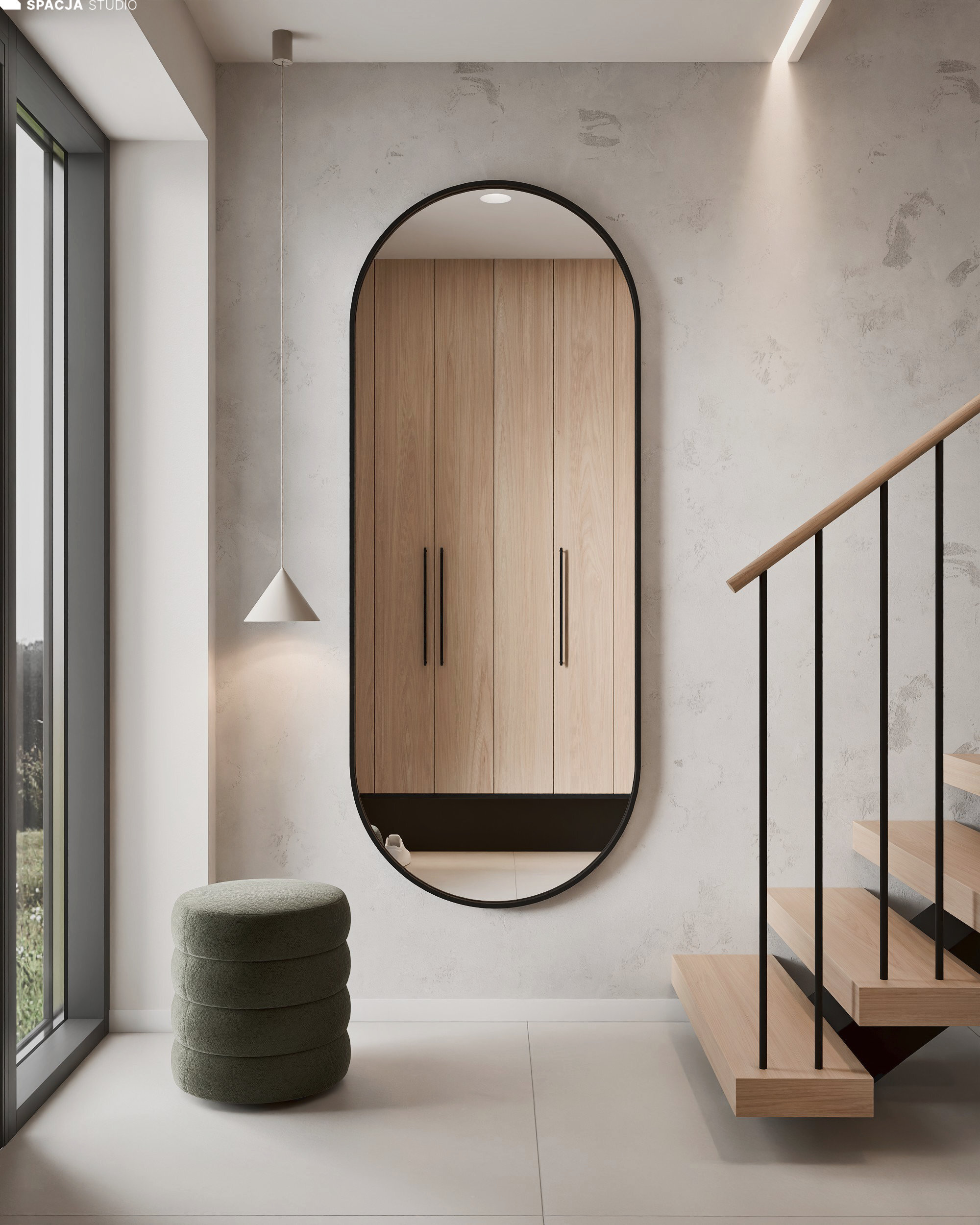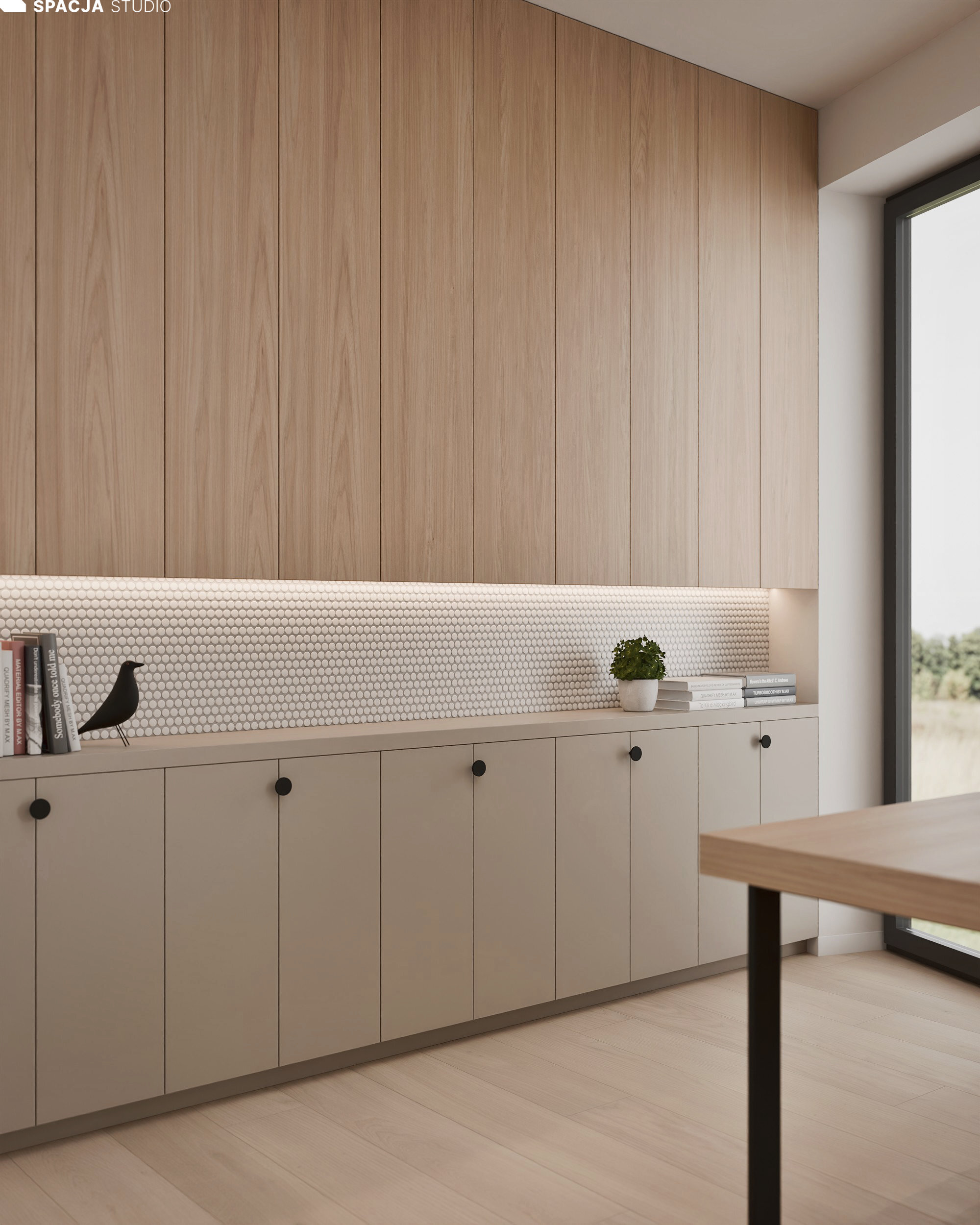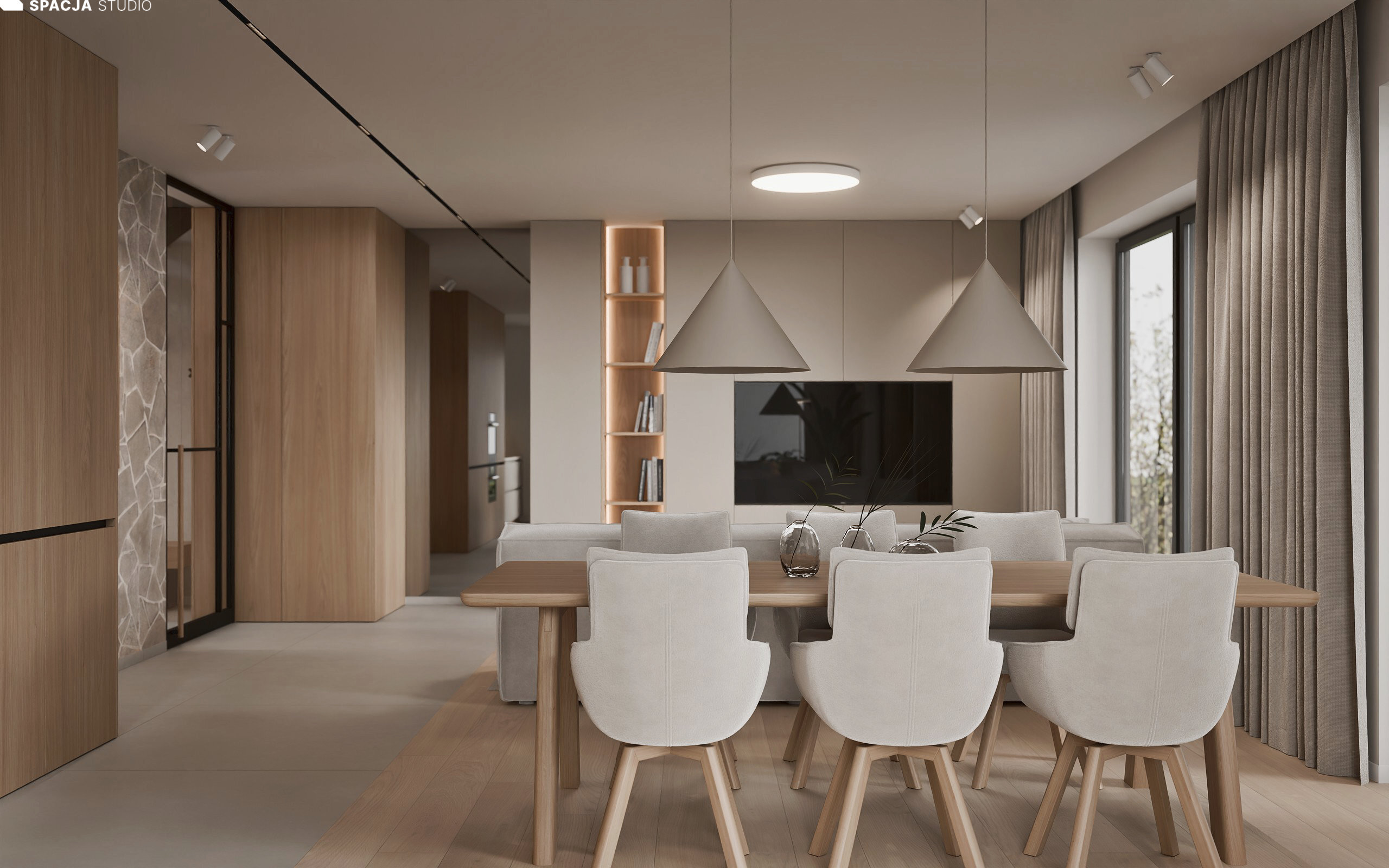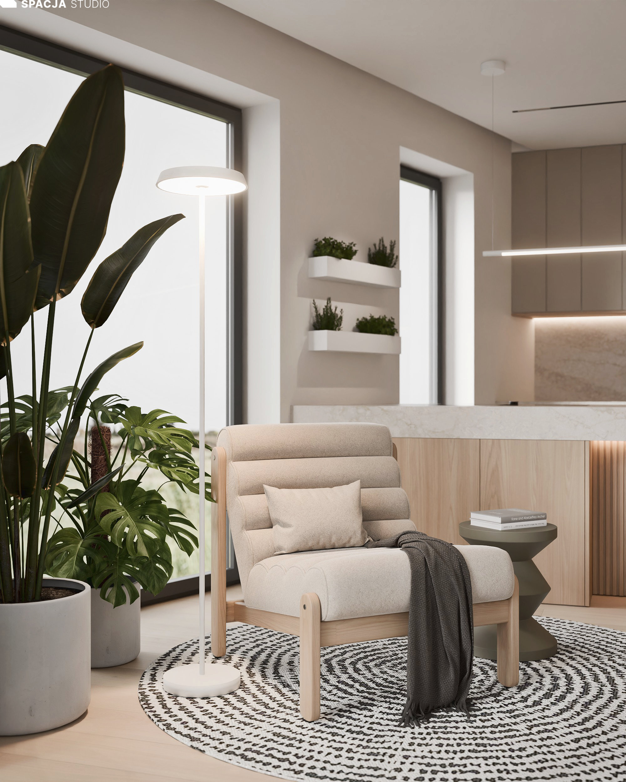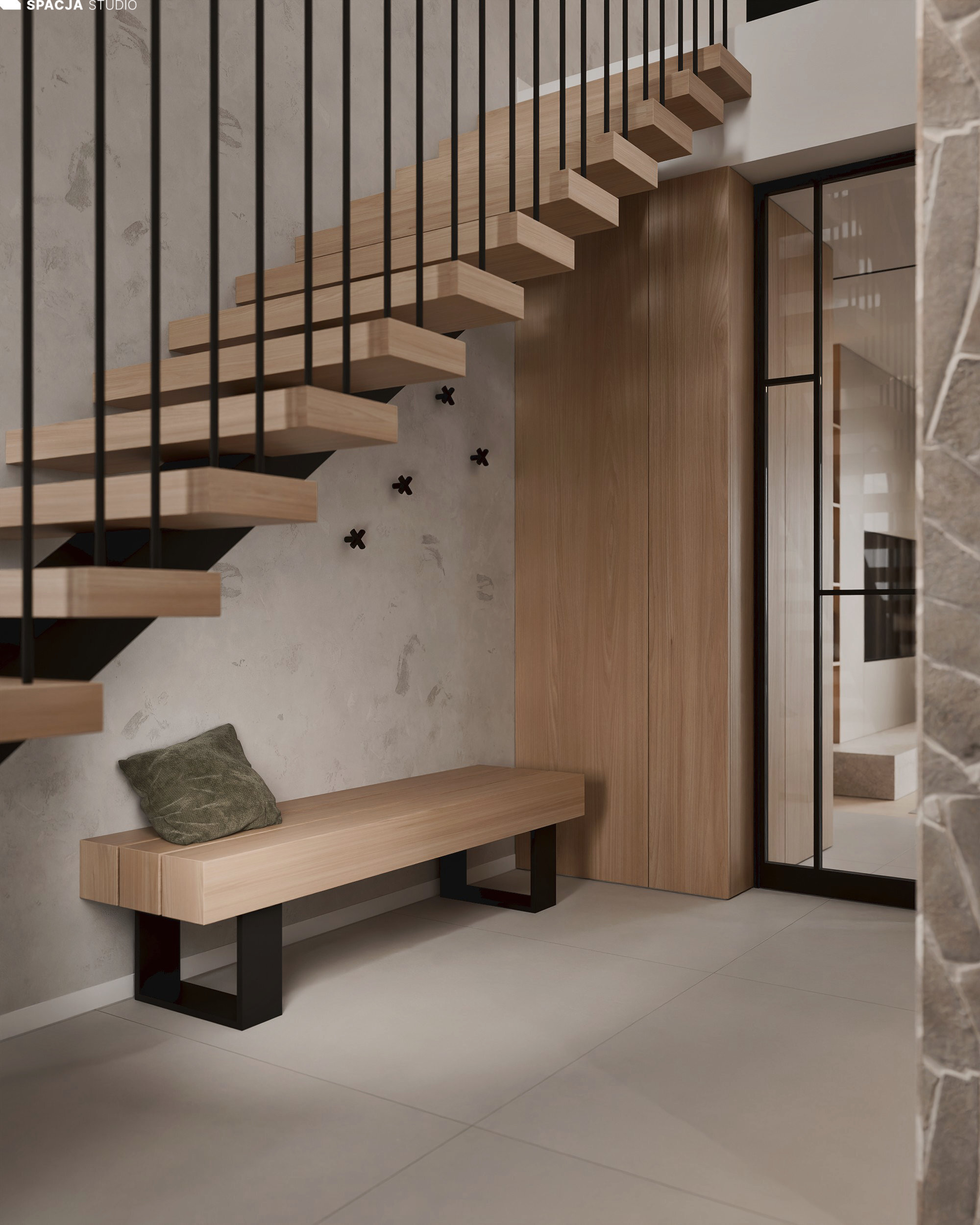 Projekt wnętrz domu na wsi powstał dla młodej rodziny. Ogromnym atutem domu są duże okna z pięknym widokiem, dlatego jego wnętrza zostały zaprojektowane tak, aby komponowały się z naturalnym krajobrazem.